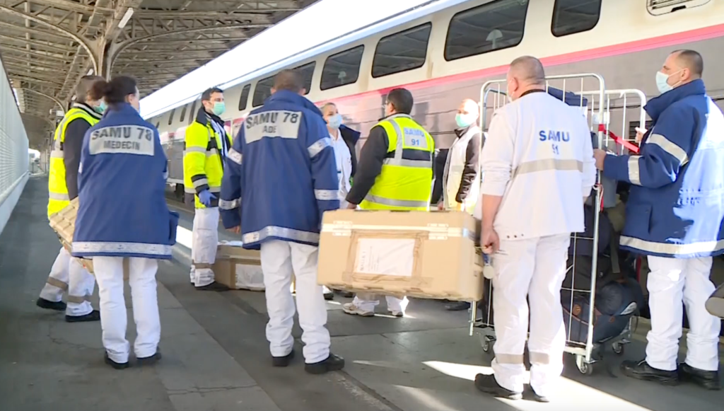 In Paris East, the refuelling of the train was provided by the agents of the Escale, while the Security teams supervised the installation of the nursing teams and the loading of the medical equipment…